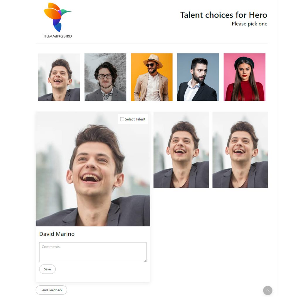 Carousel Spotlight: A dynamic carousel showcasing your top talent profiles at the forefront. Clients effortlessly browse through captivating snapshots, and with a single click, delve into each profile’s complete portfolio with details and additional photos. Perfect for grabbing immediate attention and highlighting your star performers.